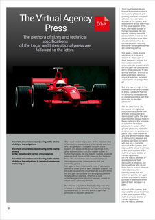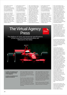 D'nA generates proofs for approval, and final reproduction files from publisher's databases. Associated specifications of the media's region, frequency, section, page, column, gutter, dots per inch and screen mesh are precisely incorporated into every reproduction file, produced and delivered online. All Ads are generated from a master file and calibrated for each specific size and title, to ensure perfect technical compliance. Unequalled flexibility - Right First Time, Every Time.